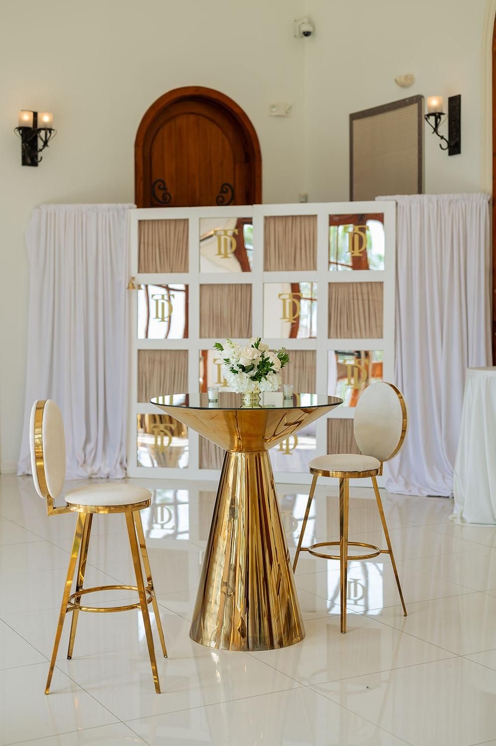 Their elegant white and gold finish keeps the look polished and versatile — ideal for weddings, corporate events, or any occasion where you want guests to mingle in style.